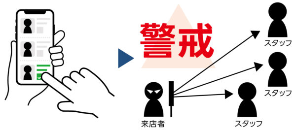 過去に問題のあった人物が再来店した場合、即時にスタッフへ通知。